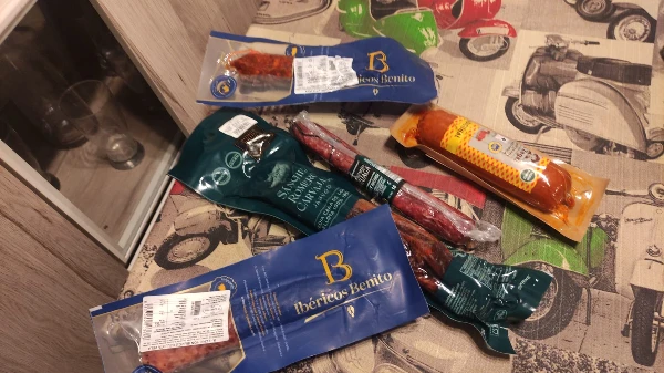 Vendo paleta de cebo ibérica (50% raza ibérica) de la marca Secretos de Tonda, sin abrir, color negro. Incluyo varios sobres de embutido Benito y un chorizo, todo envasado.