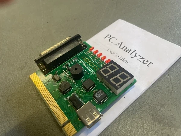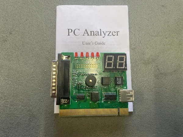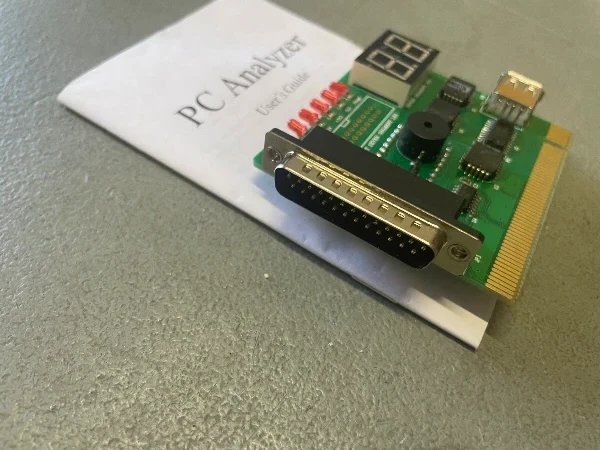 Vendo tarjeta POST para diagnóstico de placa madre en ordenadores. Está usada pero en buen estado, con manual incluido. Color verde, tiene puerto paralelo y conector USB. - Marca genérica - Incluye guía de uso 📄 - 7 segmentos y LEDs funcionales