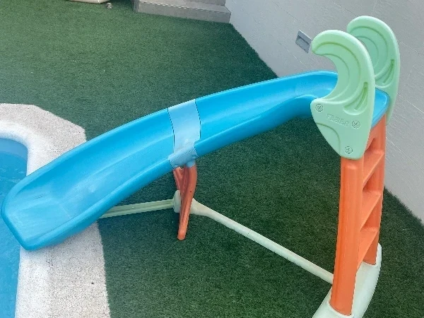 Tobogán de la marca Feber, ideal para exterior. Está en buen estado, usado pero sin daños importantes. Colores azul y naranja. Apto para jardín o junto a piscina.