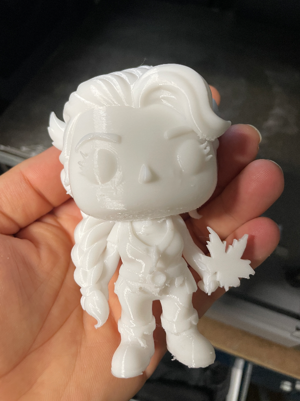Vendo figura impresa en 3D, tipo Funko Pop, hecha en PLA blanco. Parecida a un personaje de elfa o druida, lleva hoja en la mano. - Altura: unos 10 cm - Sin pintar 🎨 - Realizada con impresora 3D Si estás interesado/a en un funko personalizado contáctame sin comorimiso.